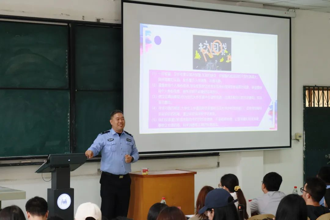 最后,安全工作处陈安老师结合我校安全工作的开展情况以及针对大学生中发生的一些实际案例展开分析,希望同学们结合今天的讲座切实提升安全防范意识和防范电诈的能力。