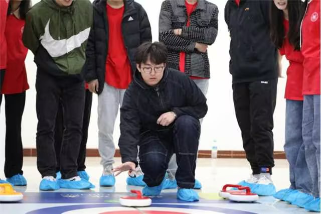 旱地冰壶又名地壶球,是一个以团队为单位在平滑地面上进行的投掷性运动项目。通过让本方冰壶球停在预先设定好的目标位置,并将对方的冰壶球击出,达到取胜的目标。在该项目中,同学们充分体验了团队竞技项目带来的紧张与喜悦,也在团队合作中培养了沟通能力和战略思维。掌握良好的沟通方法,培养自己的大局意识,发扬永不言败的精神,通过简单的比赛,同学们收获了能够运用在今后学习和生活中的宝贵经验。