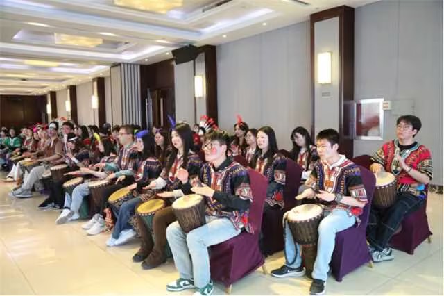 非洲鼓不仅仅是一种乐器,更是一种沟通方式。在部落地区,人们通过鼓乐将精神联系在一起,用打鼓来振奋精神,激励人心。在培训师的带领与小组成员们的密切配合下,同学们从最初小心翼翼尝试到最后全身心投入,跟随音乐节奏律动,感受着音乐与鼓声的完美结合,气氛逐渐被推向热烈。“激情非洲鼓”不但让同学们摆脱了活动刚开始时的害羞与拘谨,也让大家明白了只有团队齐心协力,才能够演奏出最和谐的乐章。