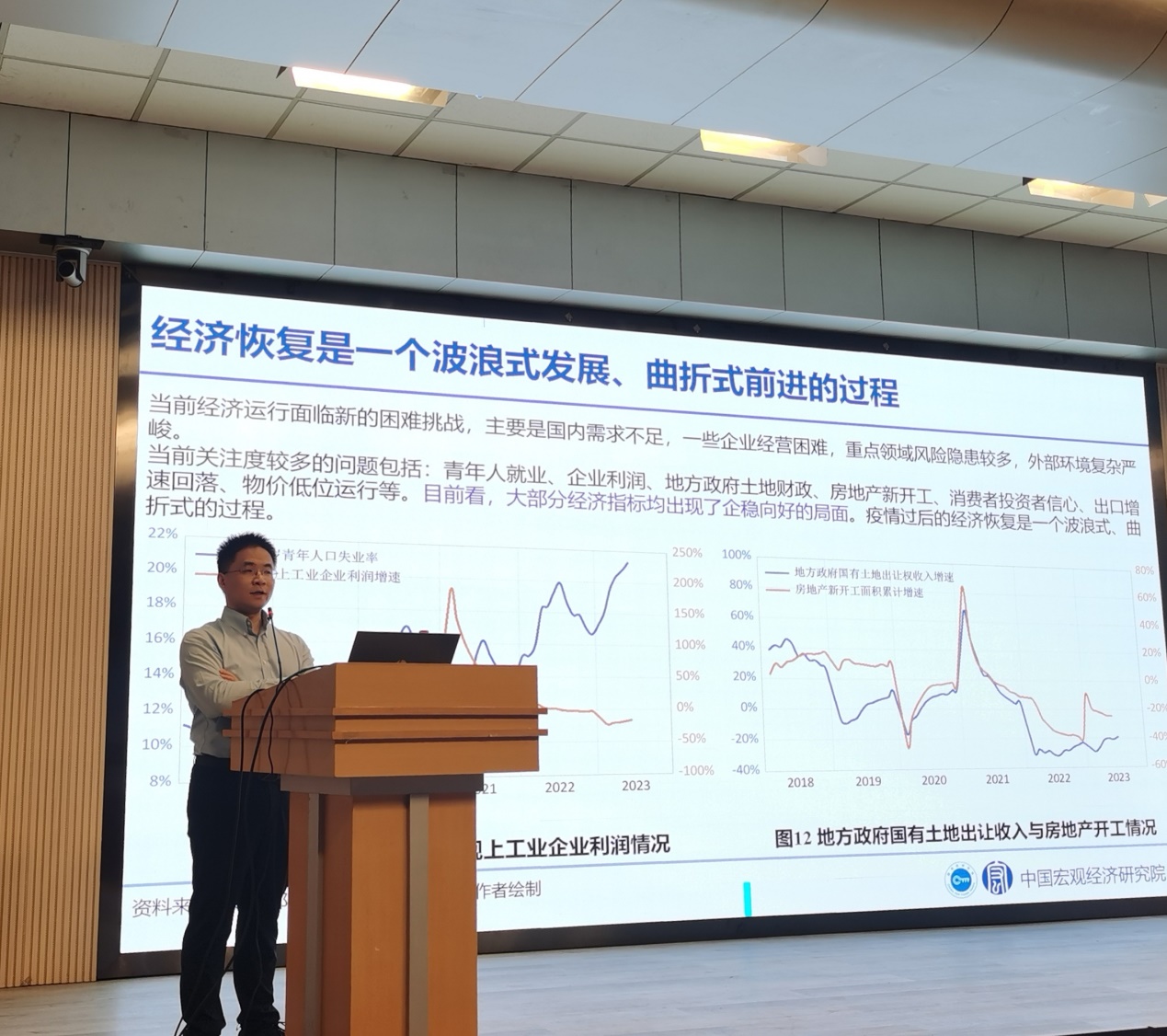 王树强教授首先对徐鹏副研究员的到来表示热烈欢迎,并简要介绍了徐鹏副研究员的研究和工作成果。随后,徐研究员以“当前宏观经济形势及展望”为主题,从“怎么研”、“怎么看”、“怎么判”和“怎么办”四个方面展开报告。