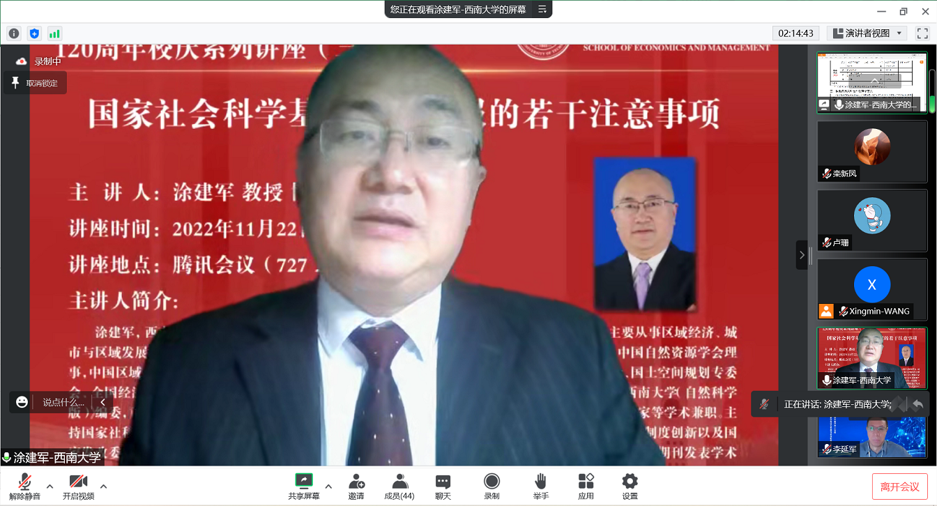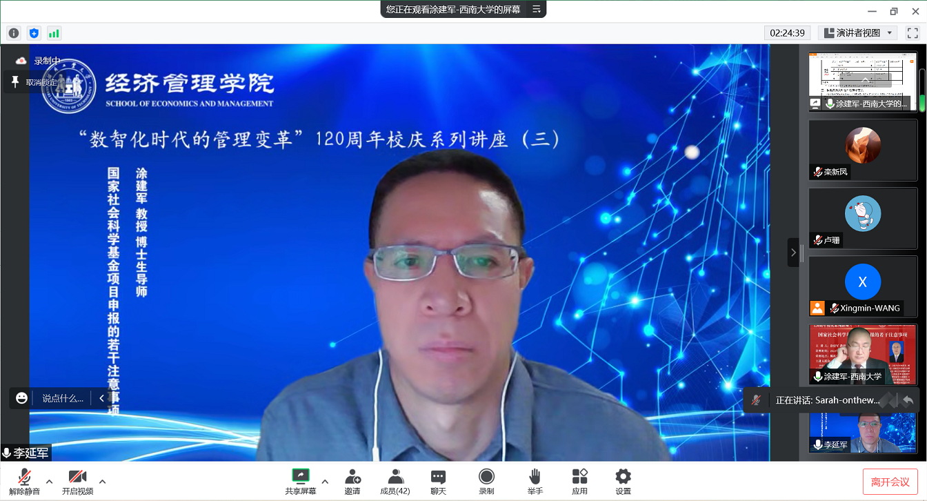 西南大学涂建军教授的国家社会科学基金项目申报讲座成功举办