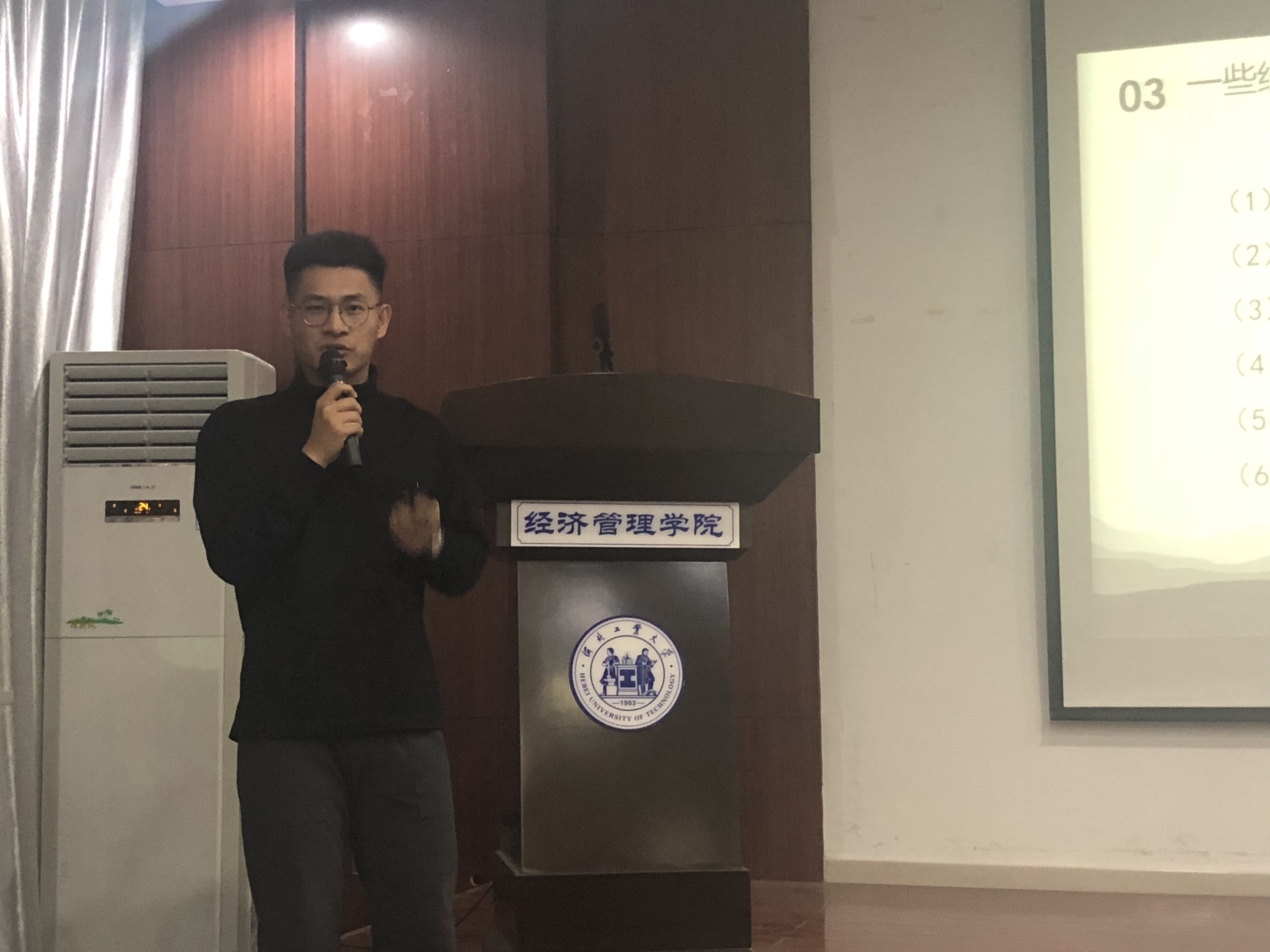 王荣同学,从选题渠道、引言、文献查找、文献整理与写作四个方面传递经验与知识。她提出了自己的一些新见解,如选题时,寻找与老师相关的感兴趣的点、跟随老师已有的项目、跟随本方向研究专家、大牛或者最新审批的国家自科、社科项目。引言部分,要学会陈述亮点、有理有据、逻辑清晰、惜字如金。