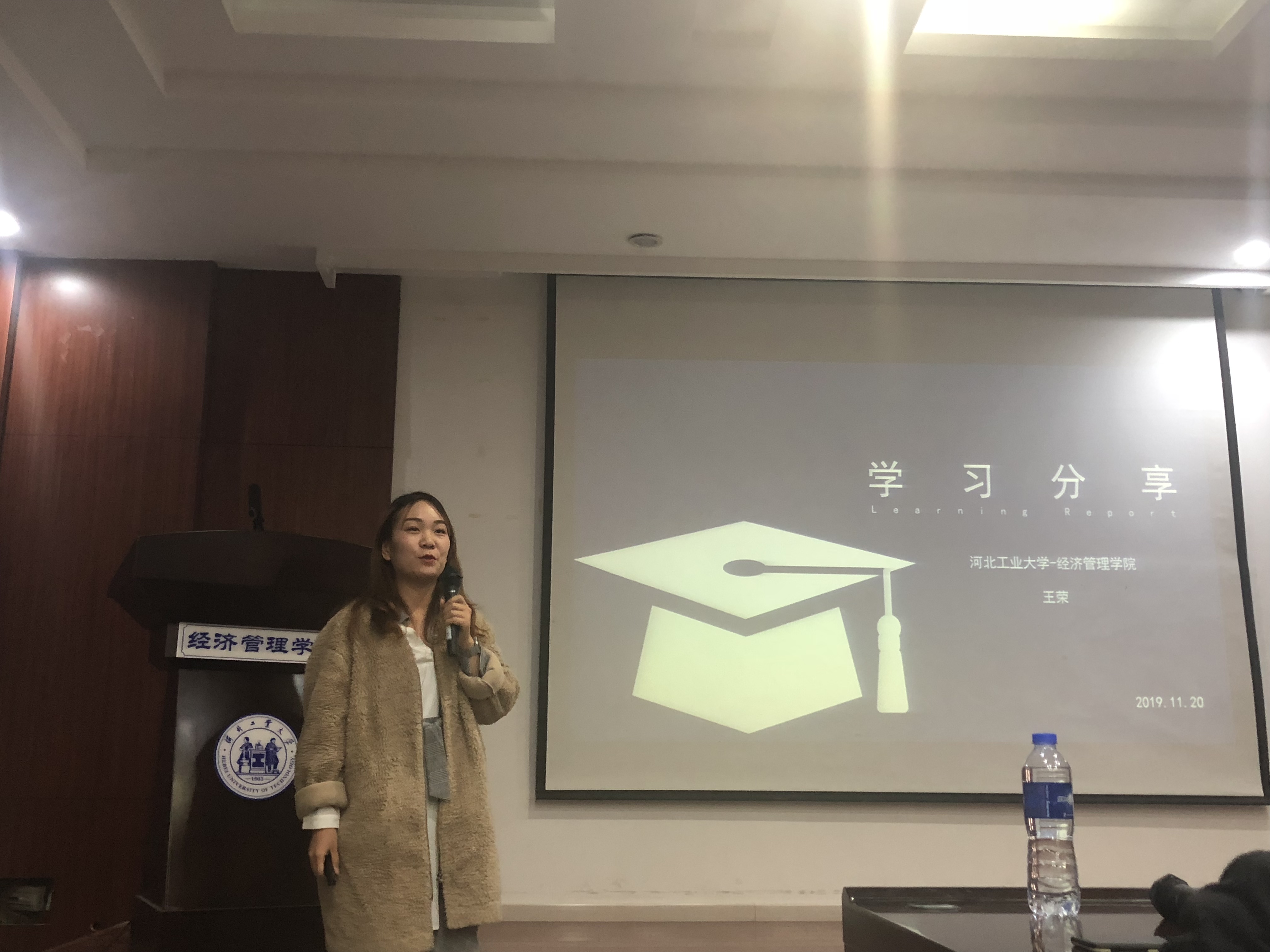 王月同学,从阅读文章类型,如何阅读以及阅读文章内容三个方面分享自己的心得体会。她细心的为同学们整理了能够查询顶级期刊的网站,并告诫大家用心琢磨论文的分析角度和分析内容。结合他人论文,总结自己想法,积极与老师沟通,避免一味闭门造车。她对同学们的寄语是:勤于阅读,善于思考;学习借鉴,大胆创新。