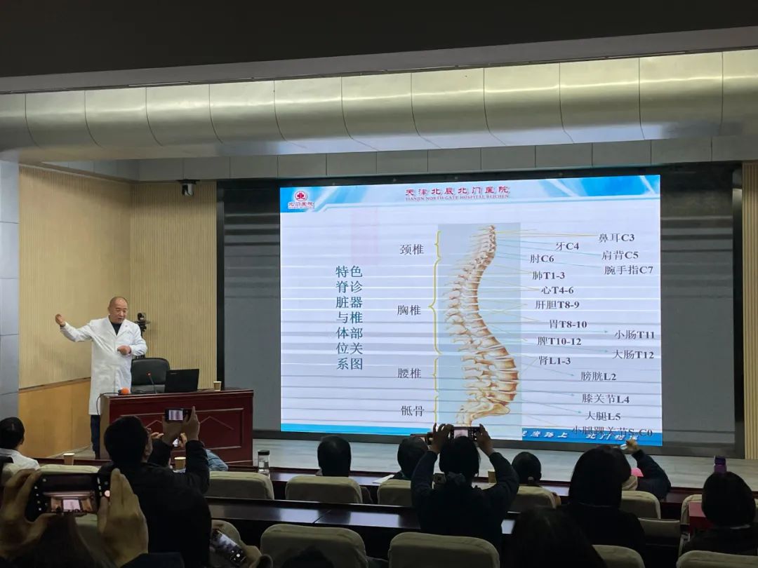 天津市人大代表、北门医院副院长张国庆主任深入浅出地讲解了脊柱健康的重要性,以及日常生活中如何保护脊柱和预防脊柱疾病的发生。作为脊诊整脊资深专家,张国庆形象生动地介绍了脊诊整脊技术的原理和应用,让老师们对这门医疗技术有了系统深入的了解。