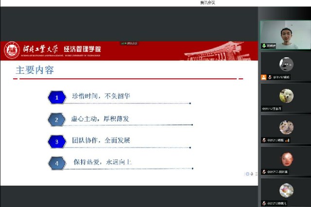 为搭建优秀校友与在校学生之间沟通交流的桥梁,21级本科生年级工作委员会分别于5月22日、27日、29日连续举办了“经英成材”校友讲坛系列活动,邀请到陈映燃、杨瑞露、刘荣悦三位21级校友辅导员,通过线上会议的方式从大学时期的思想、生活、学习、工作等多个方面分享交流了自己的经验和建议。本次活动吸引了21级全体学生及大批感兴趣的同学,千余人次参与线上讲坛。